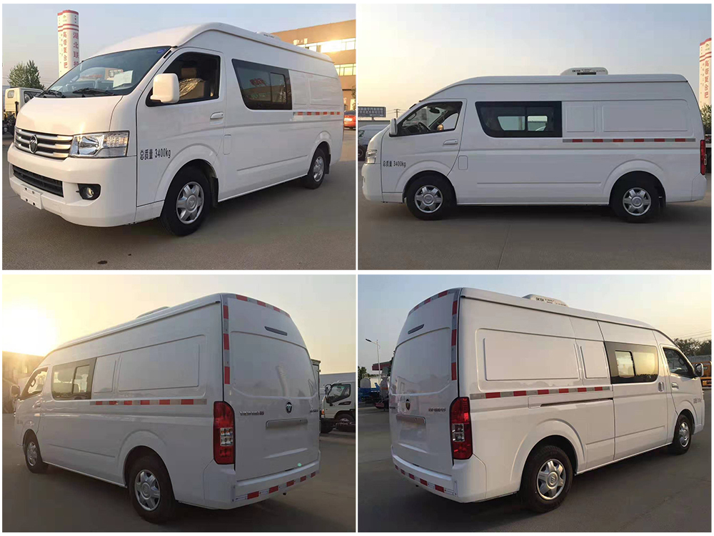 福田G9面包冷藏車,國六排放標準,整車型號:BJ5039XLC-V1,底盤型號:BJ6549B1PXA-E4,沈陽航天三菱汽車4G69S4M發動機,136馬力,3110軸距,準乘人數: 2人,盲窗:前暖風前空調(可以選裝ABS+1500,電動窗+中控鎖+1600),整車尺寸:5380×1920×2530,廂體內尺寸(2860×1560×1410mm)(2860×1630/1200×1410mm)